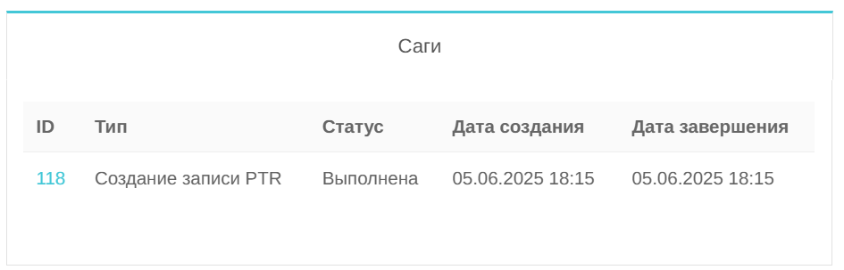 В нижней части карточки находится история действий PTR-записи.