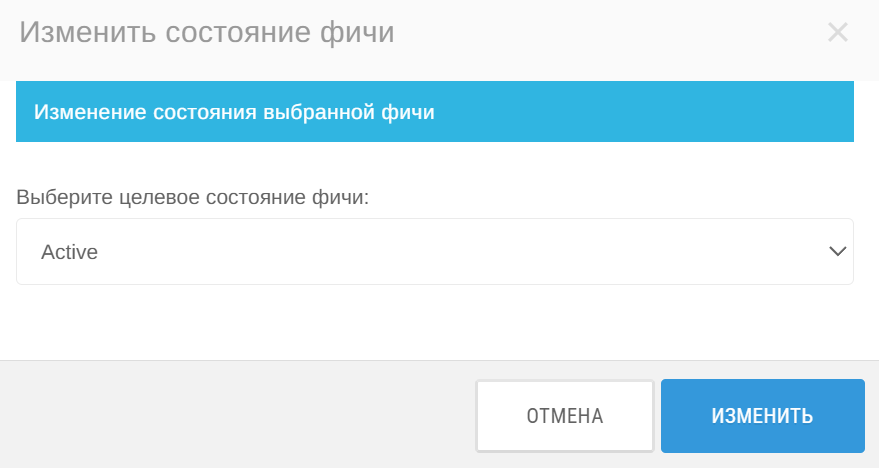 4. На карточке фичи нажмите Изменить состояние и переведите фичу в состояние Active. Нажмите Изменить.