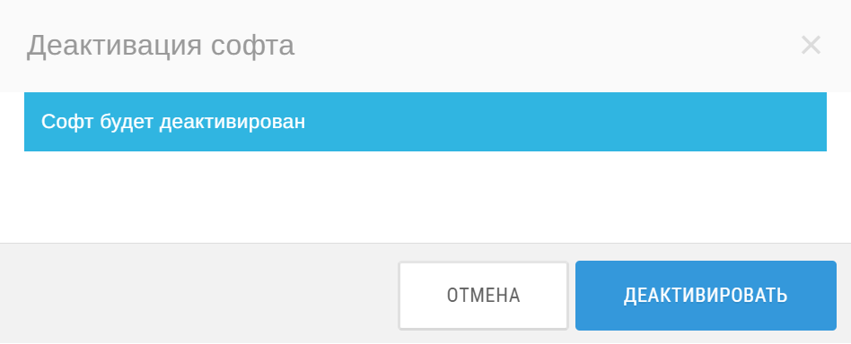 В верхней части находится кнопка Деактивировать, она отключает конкретную лицензию. После деактивации лицензию нельзя добавить к ВМ, а у уже подключенных ВМ плата за деактивированную лицензию взиматься не будет. При нажатии на Деактивировать откроется окно подтверждения, в котором нужно нажать Деактивировать.