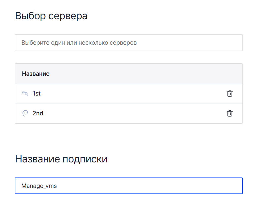 Выберите виртуальные машины, которые вы хотите включить в подписку, и заполните поле с названием подписки.