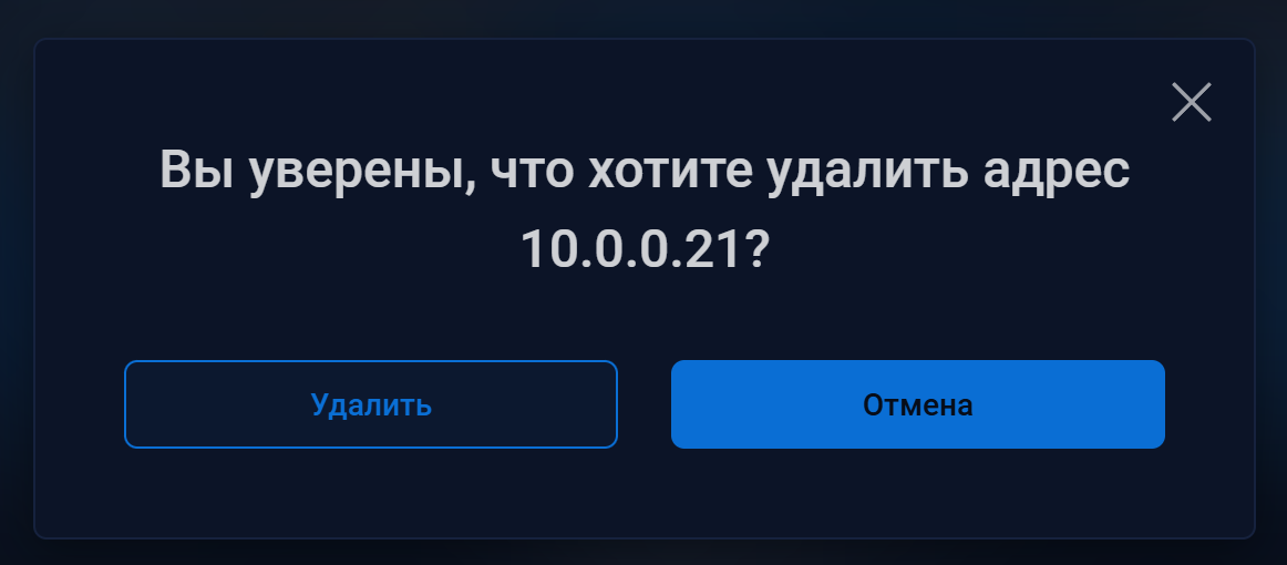 Рисунок 9. Подтверждение удаления IP-адреса из пула