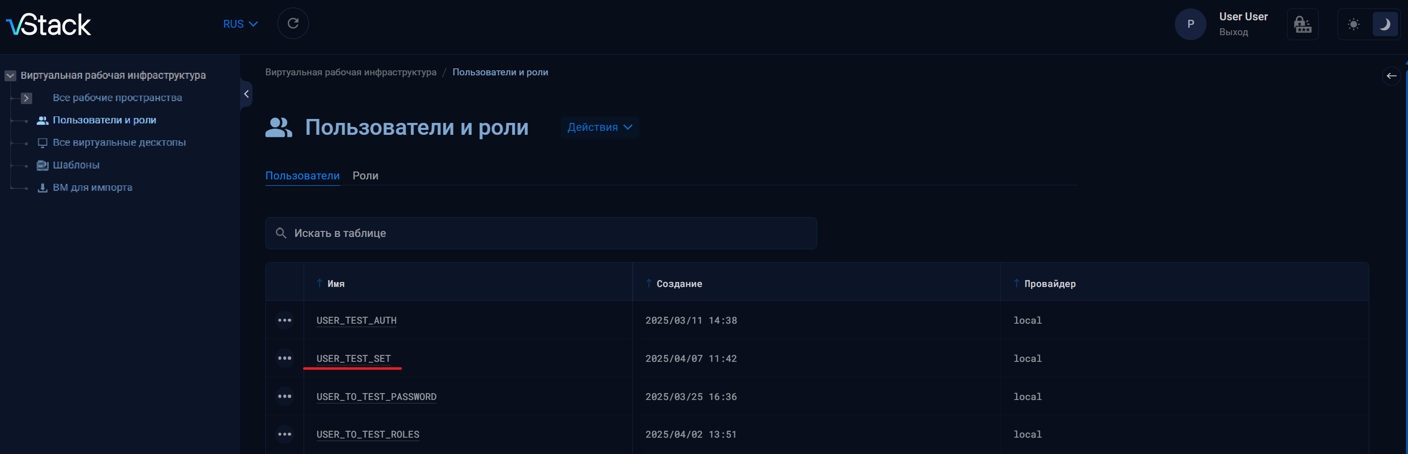 Для назначения роли пользователю в разделе Пользователи и роли выберите пользователя, которому хотите назначить роль.