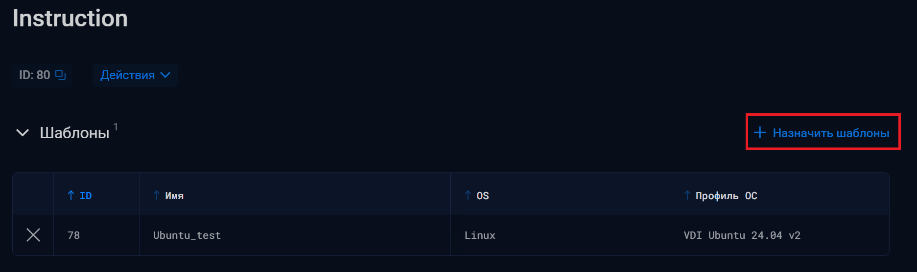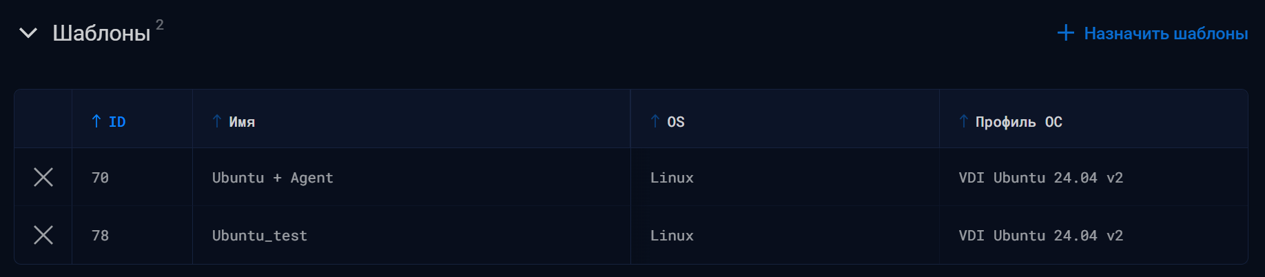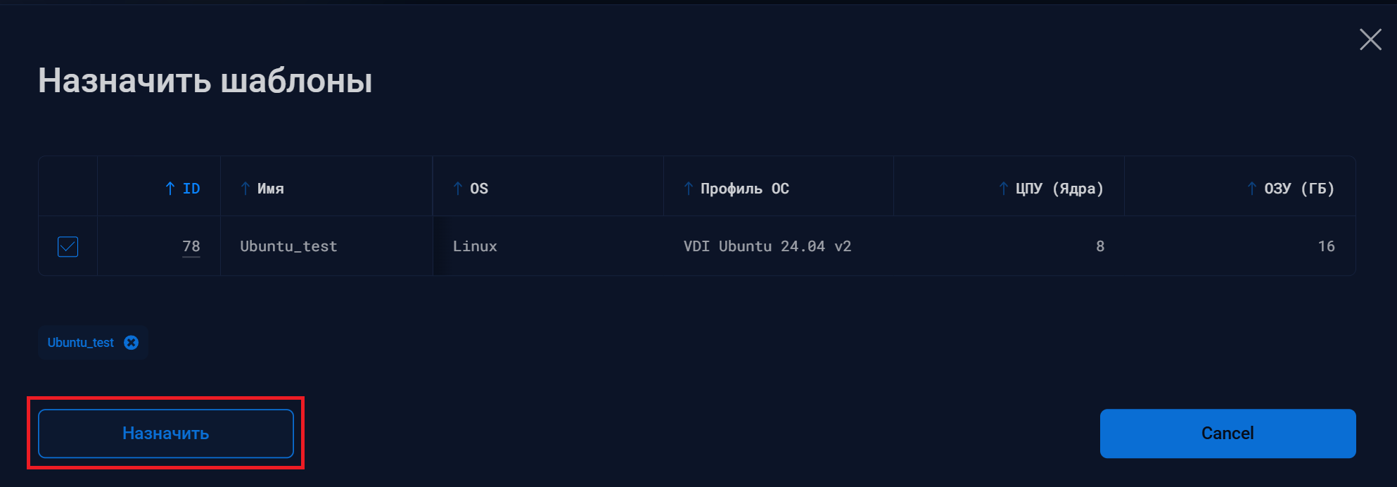 Назначенный шаблон должен отобразиться в списке шаблонов виртуального рабочего пространства.