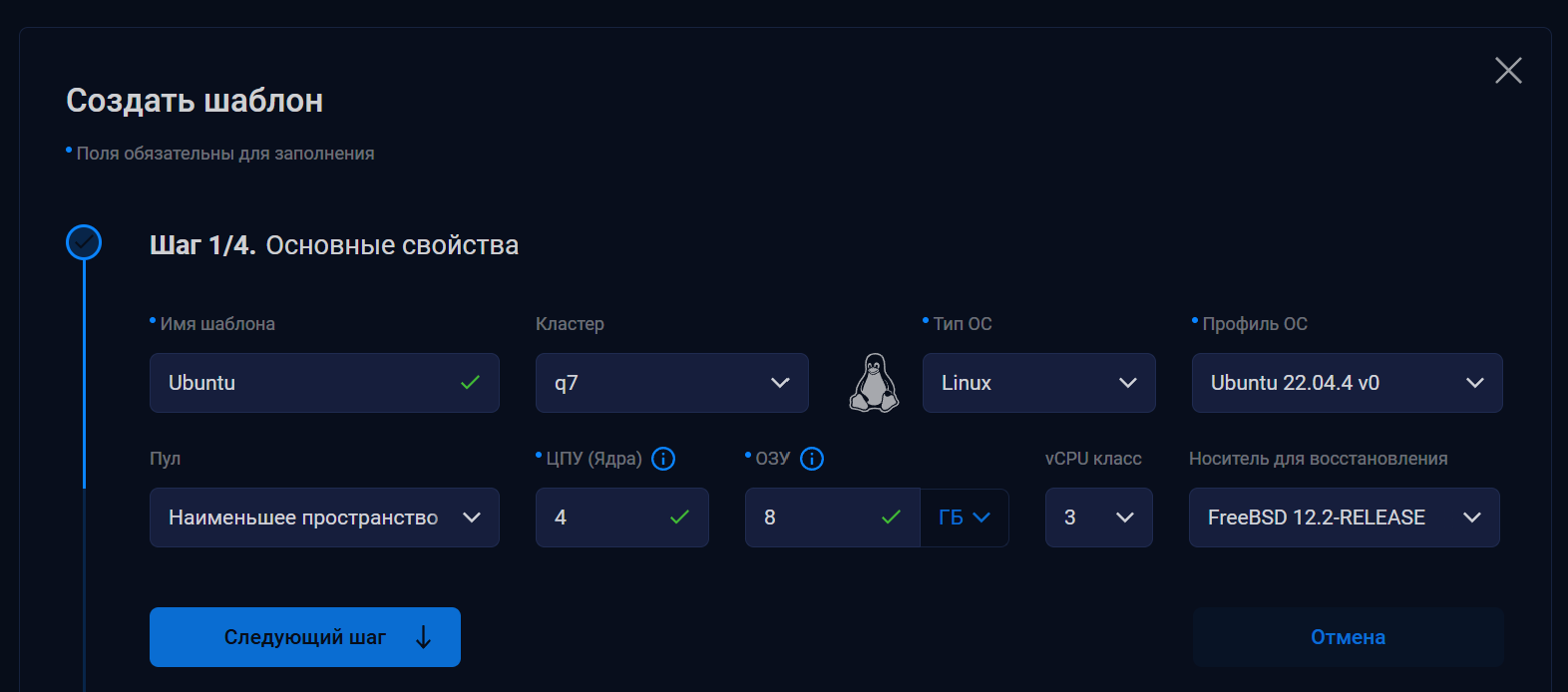 Шаблон (Template) — конфигурация виртуального рабочего стола, которая включает в себя как технические спецификации будущего виртуального стола (CPU, RAM, Storage), так и настройку гостевой операционной системы и дополнительные протоколы подключения.