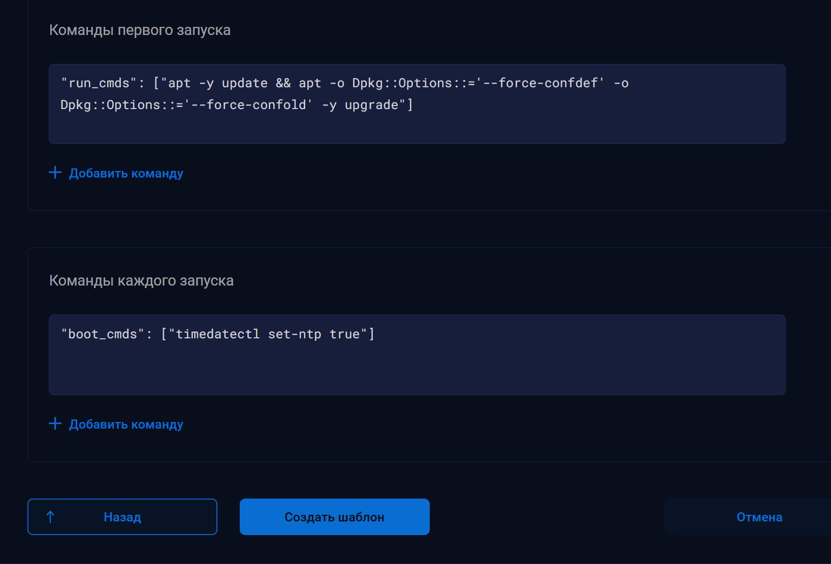Также можно добавить DNS серверы, команды первого и каждого запусков.